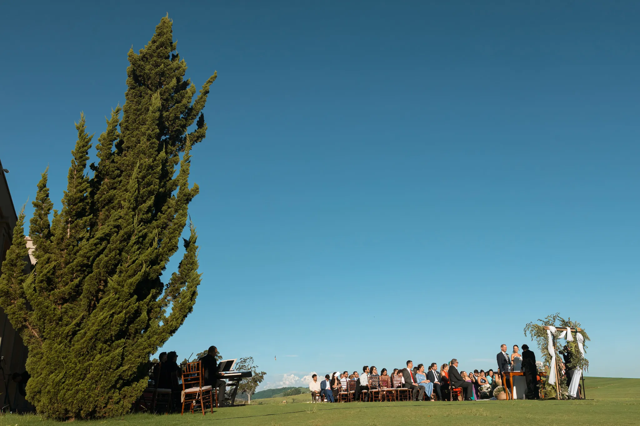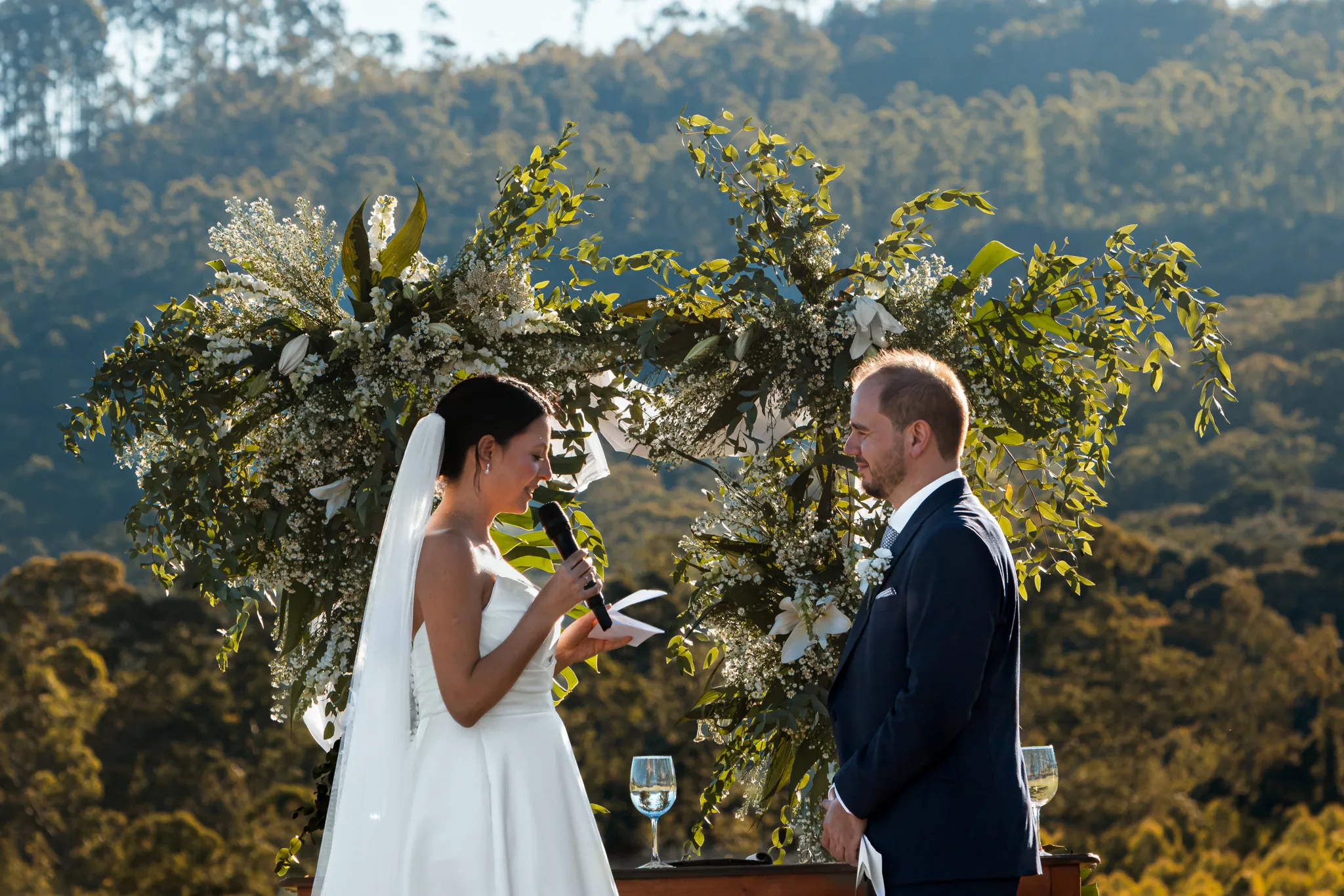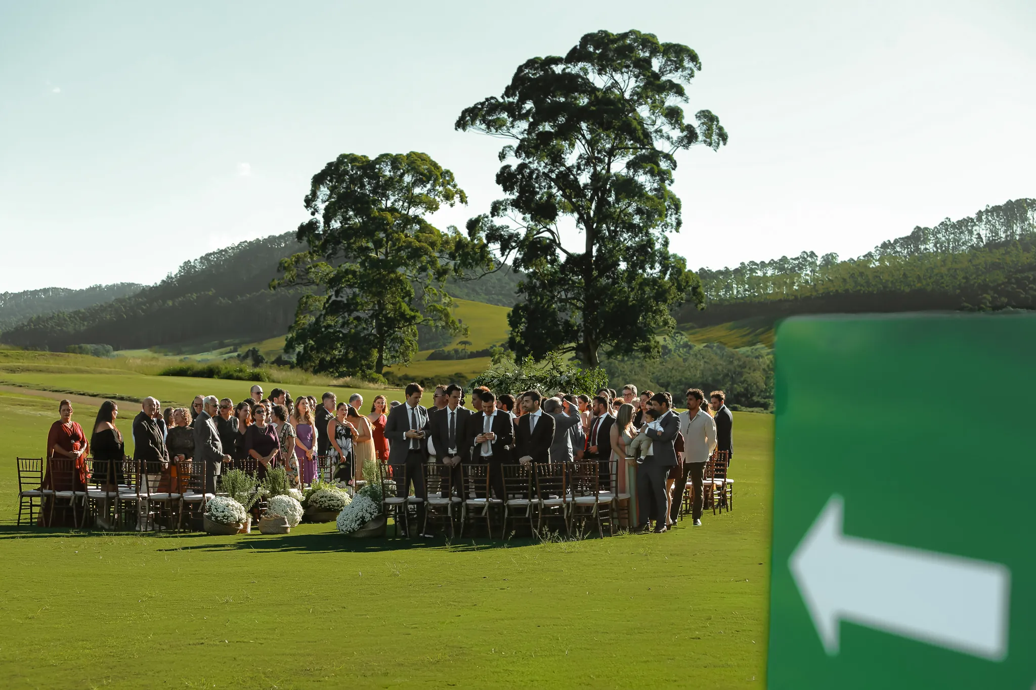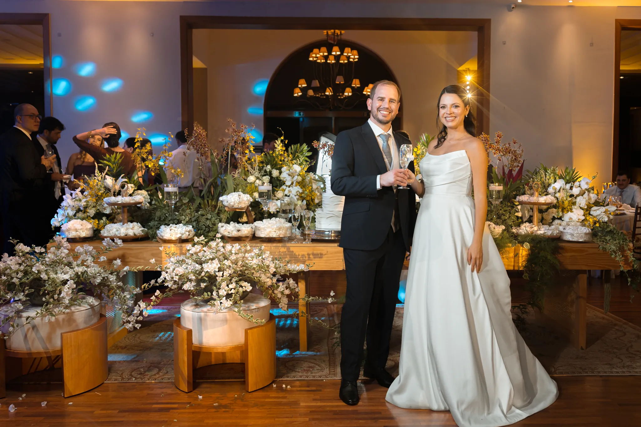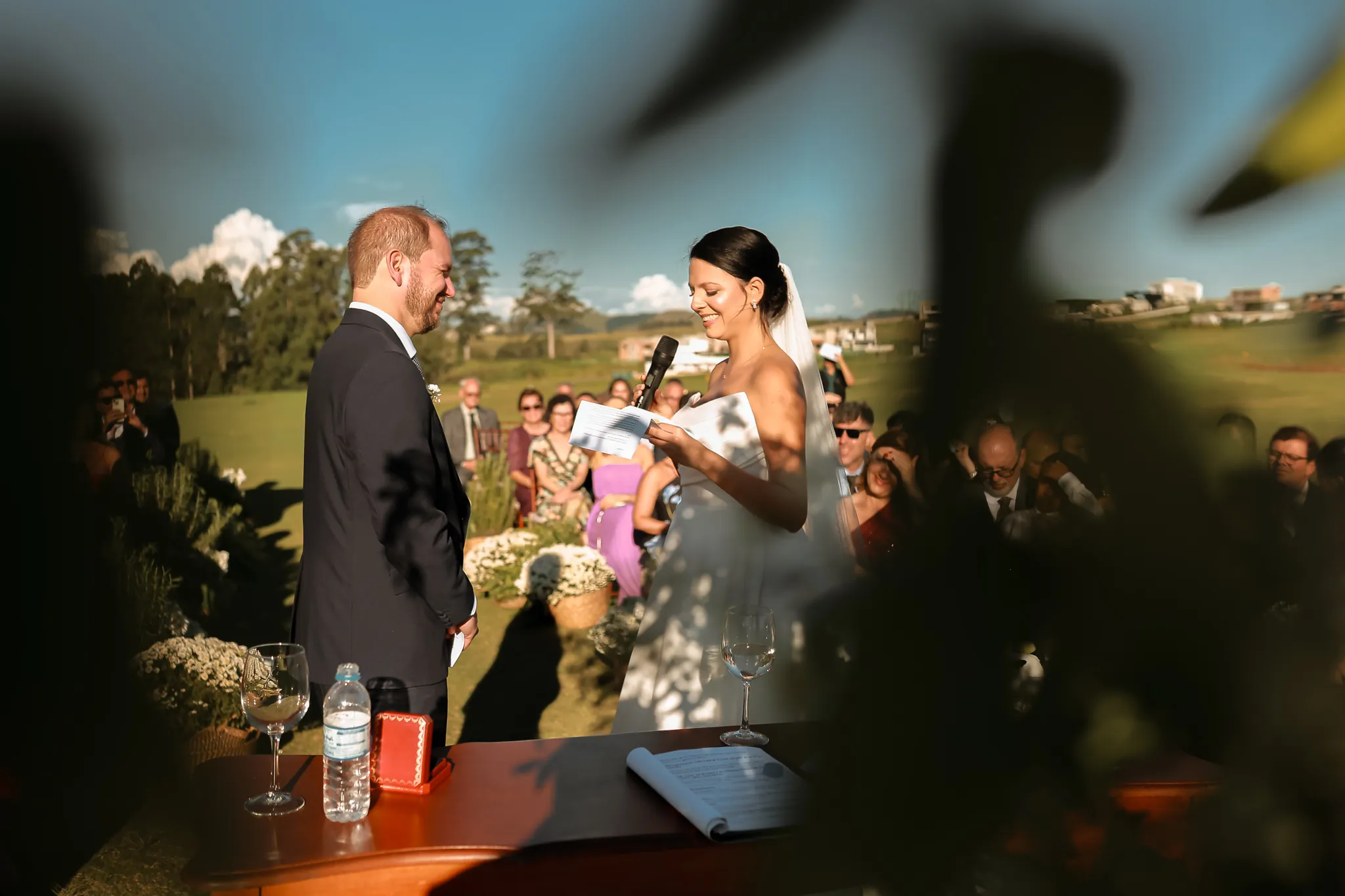 A previsão era de chuva, mas o dia resolveu presentear os dois com um sol lindo, desses que mudam a energia de tudo e deixam o coração ainda mais leve. E o mais impressionante é que tudo fluiu com uma naturalidade rara. Parecia um grande dia pensado com calma por um ano inteiro, com cada detalhe encontrando seu lugar na hora certa. Mas não. Foi um casamento planejado em 90 dias, e talvez justamente por isso tenha vindo tão vivo, tão honesto e tão cheio de presença.