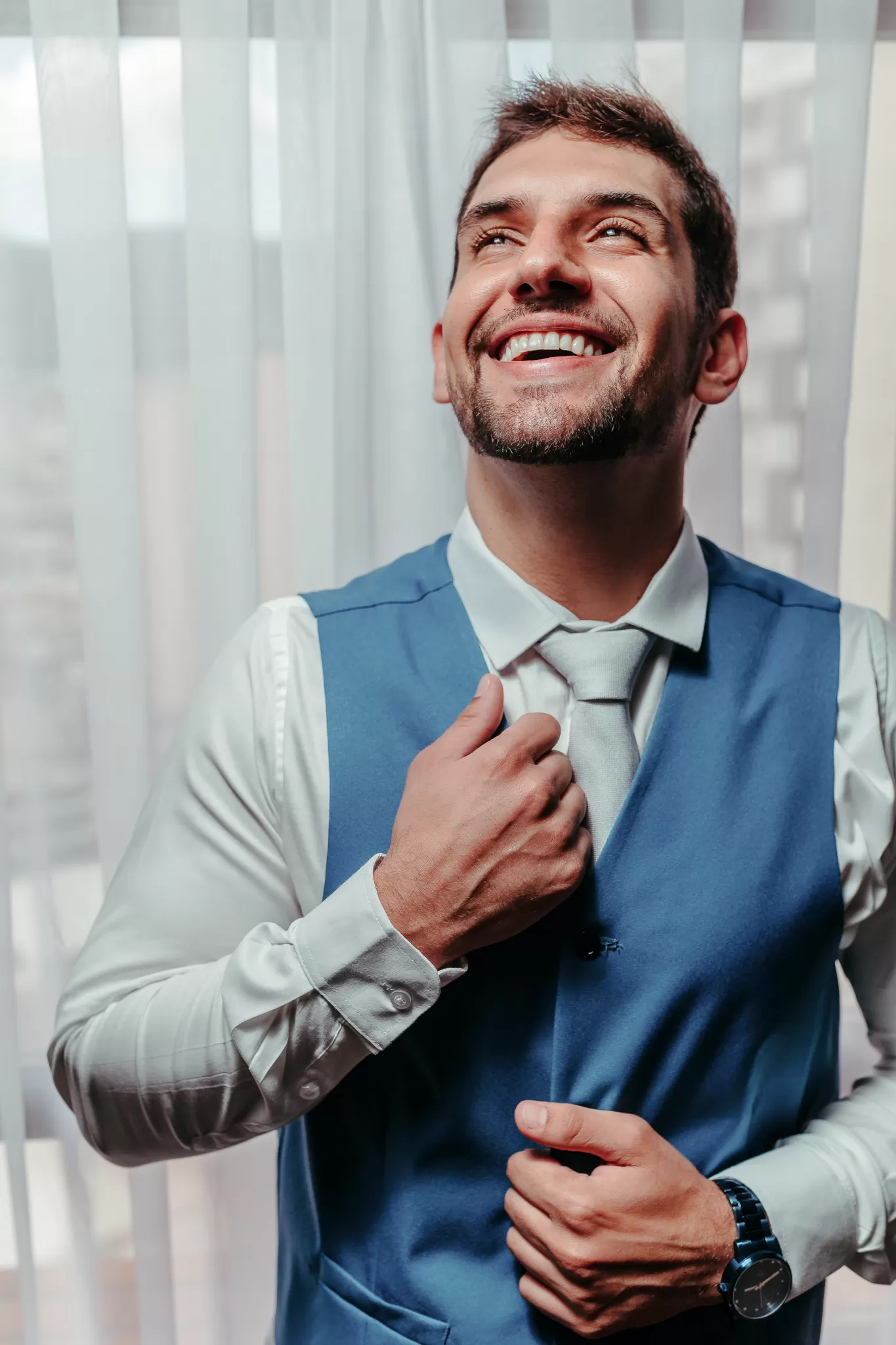 No making of da noiva a energia literalmente caiu. O breu virou cenário. Fiz retratos com luz mínima que realçaram a pele, o tecido e o silêncio do quarto. Um imprevisto que rendeu imagens fortes.