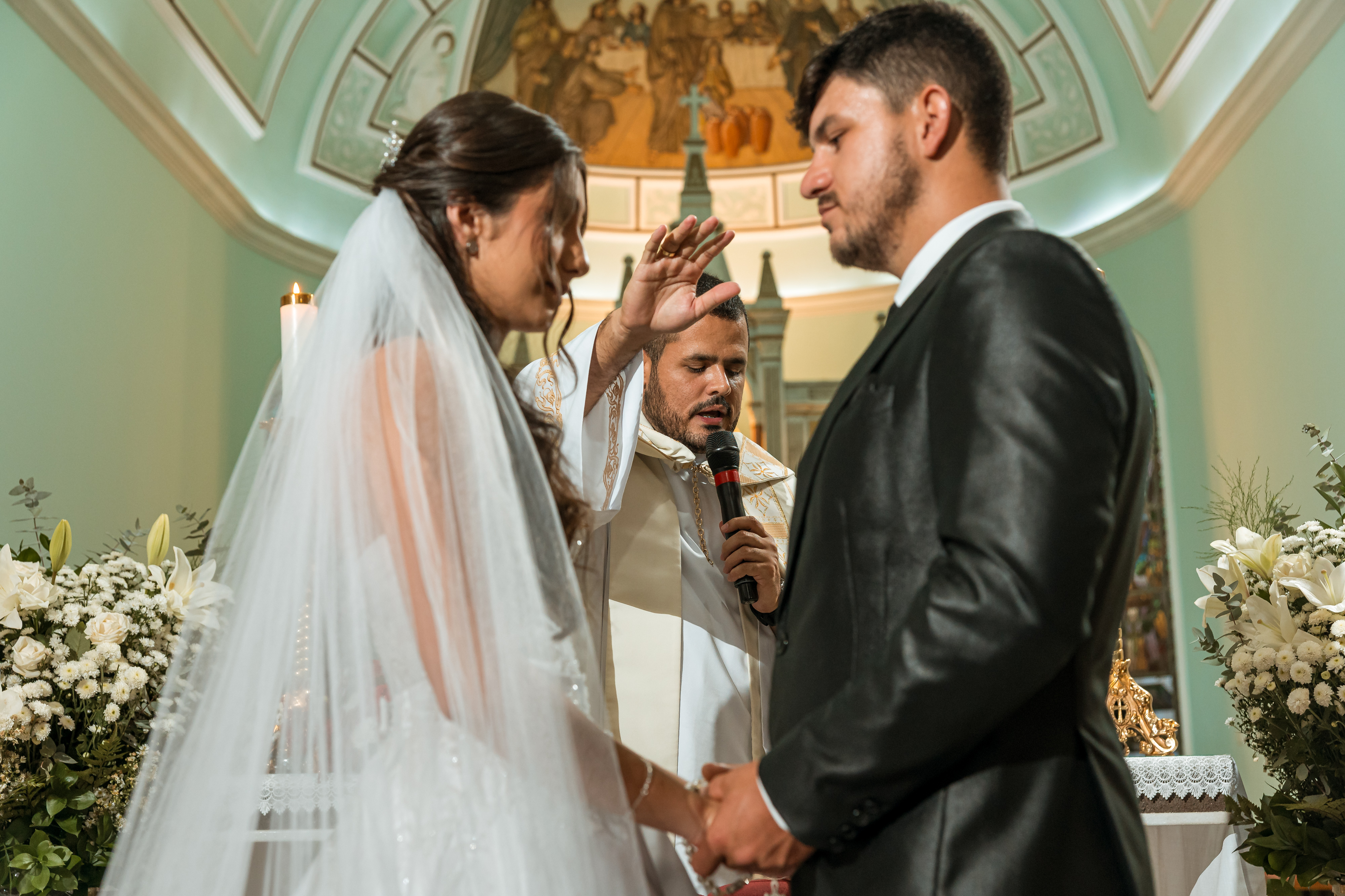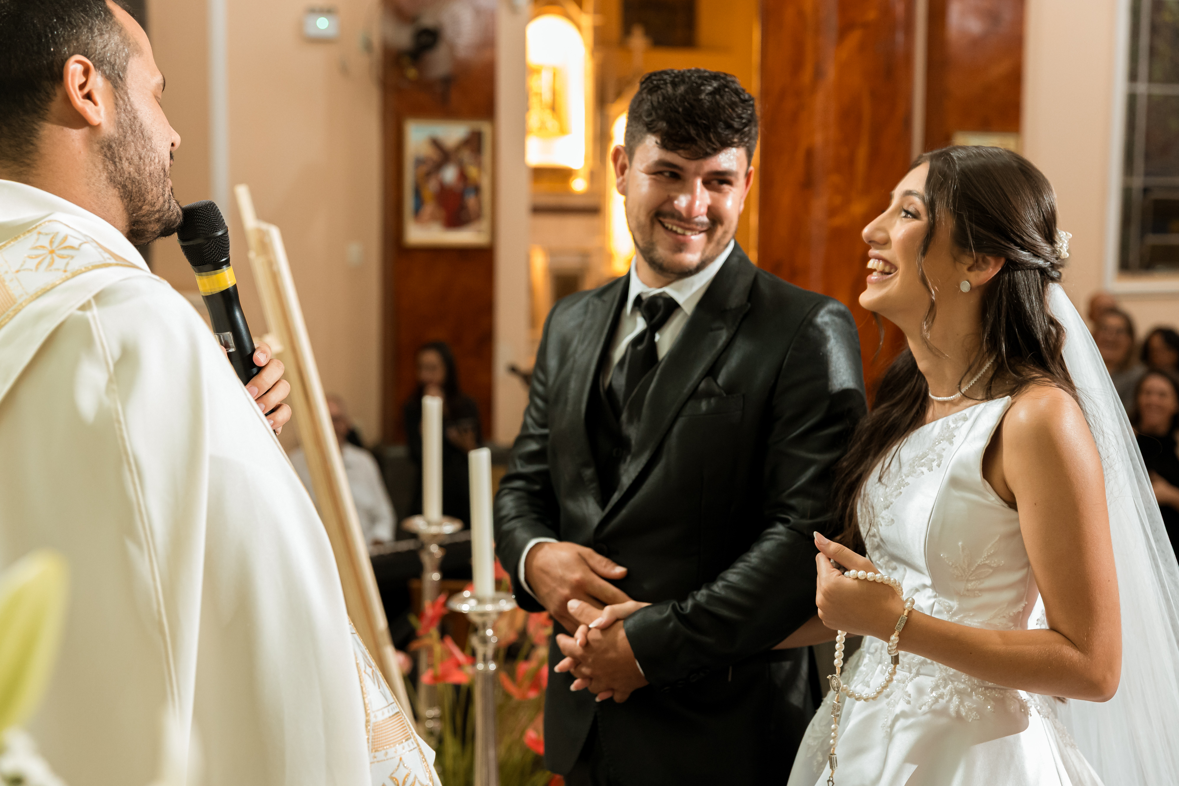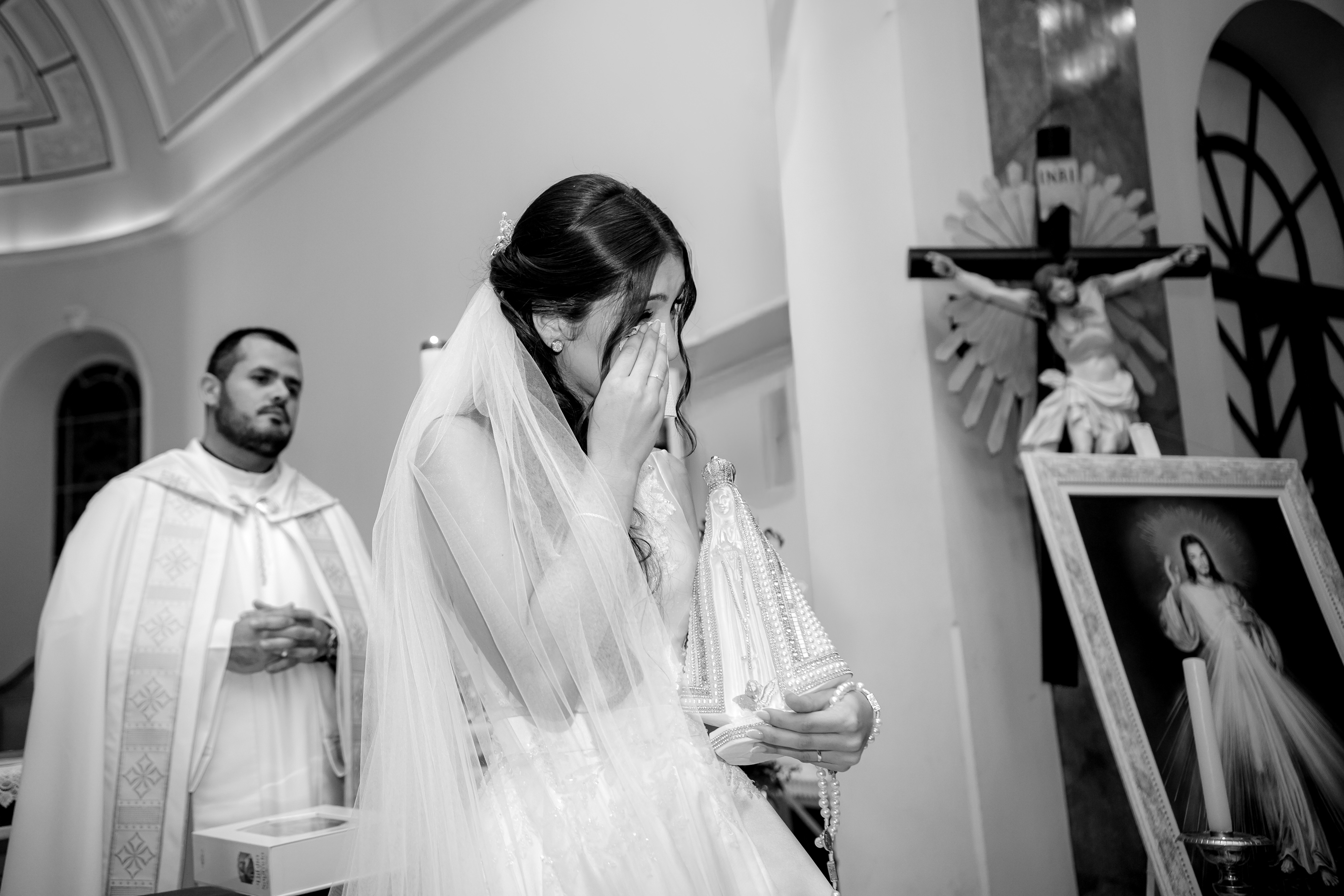 Depois vem a igreja, a fé, a emoção das famílias, os olhares entre os dois, a força do sacramento e a alegria que foi crescendo até a saída. É uma página sobre um casamento, claro, mas também sobre a delicadeza de uma noiva que chegou inteira até o último minuto e sobre tudo o que isso deixou mais verdadeiro quando finalmente os dois se encontraram diante de Deus.
