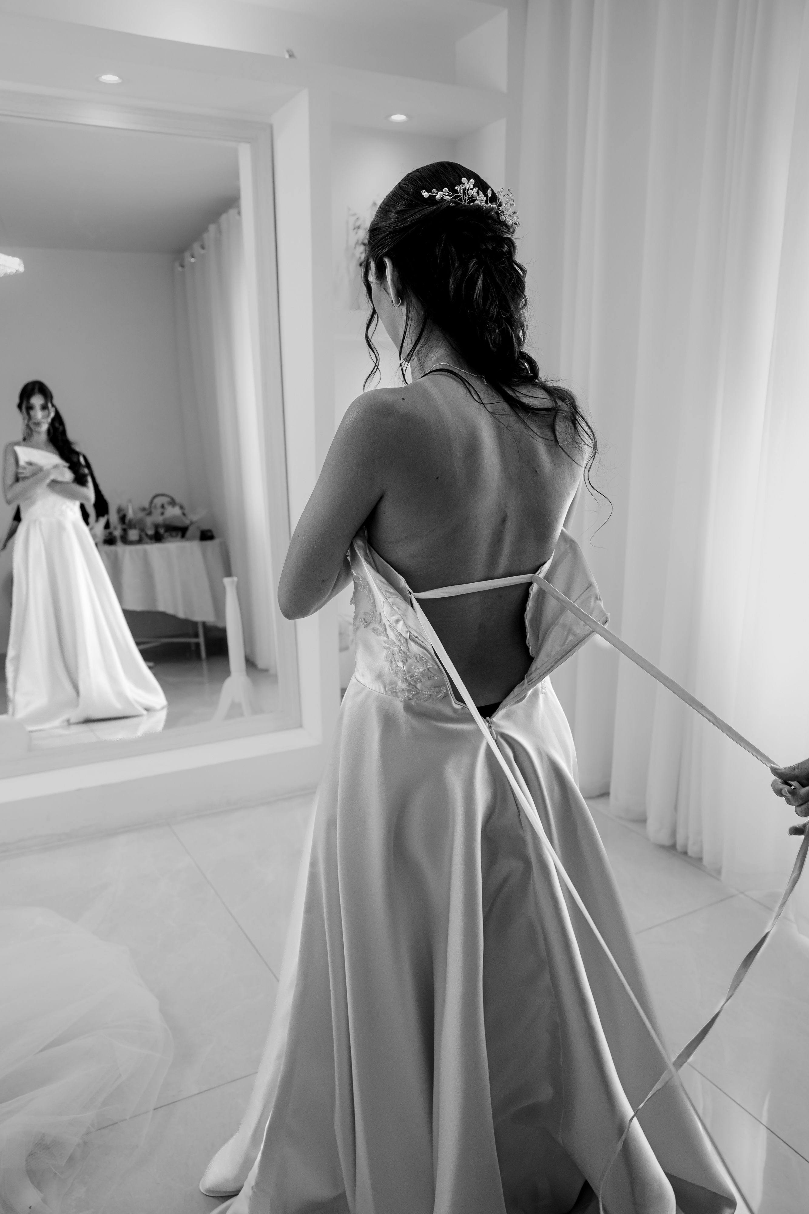Esse casamento começa antes da porta da igreja abrir. Começa no making of, nos detalhes, no vestido sendo fechado, no cuidado de cada pessoa em volta da Bianca e na forma como ela atravessou tudo com uma presença muito bonita. Não era pressa. Não era ansiedade gritando. Era plenitude.