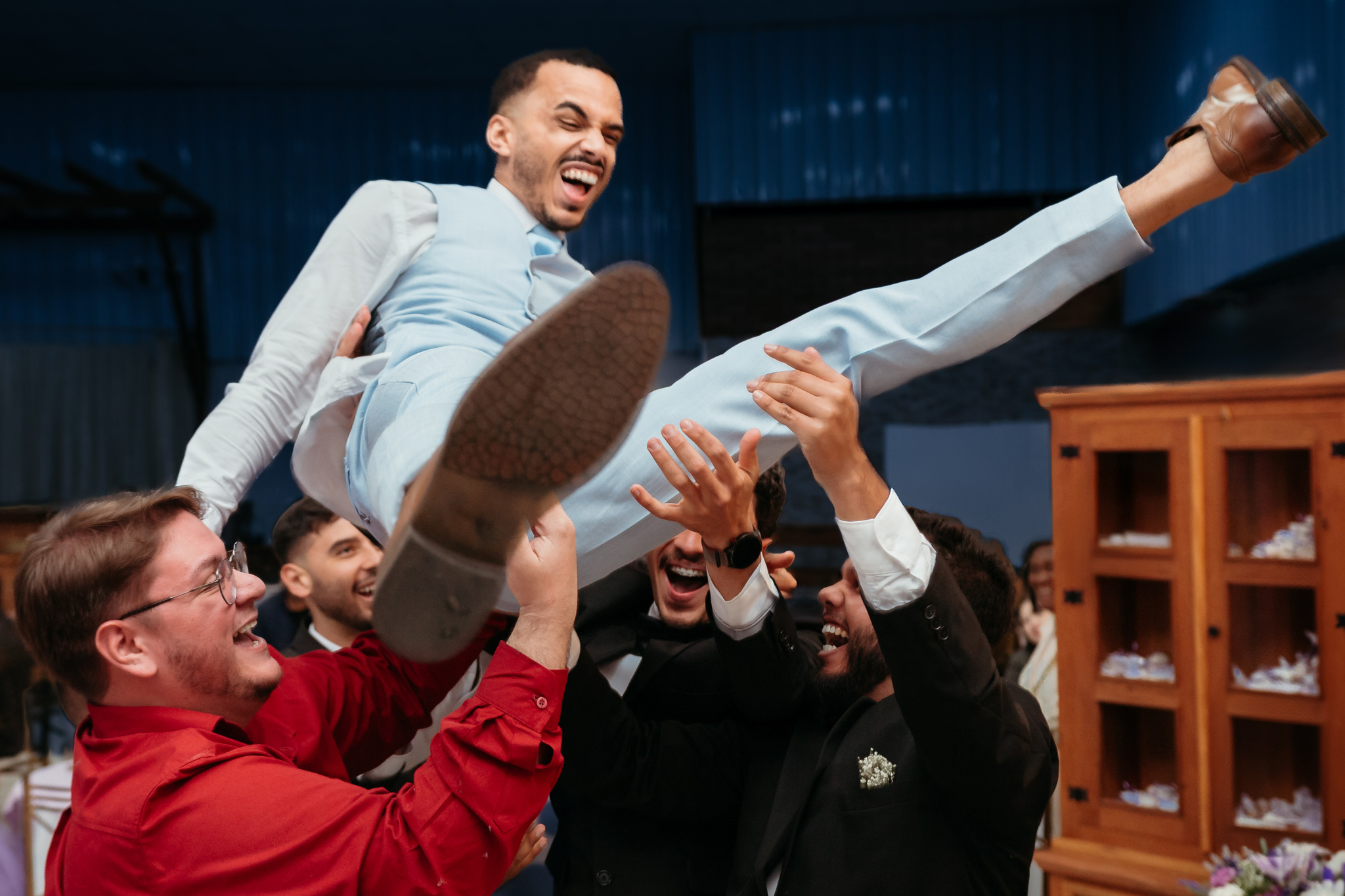 No casamento, tudo se confirmou. Mari me contou que em nove anos só tinha visto Wandson chorar duas vezes. Naquele dia ele se emocionou do início ao fim, um privilégio imenso de testemunhar e registrar. Ao apresentar as fotos depois, ver a reação deles foi tão emocionante quanto fotografar o próprio dia.