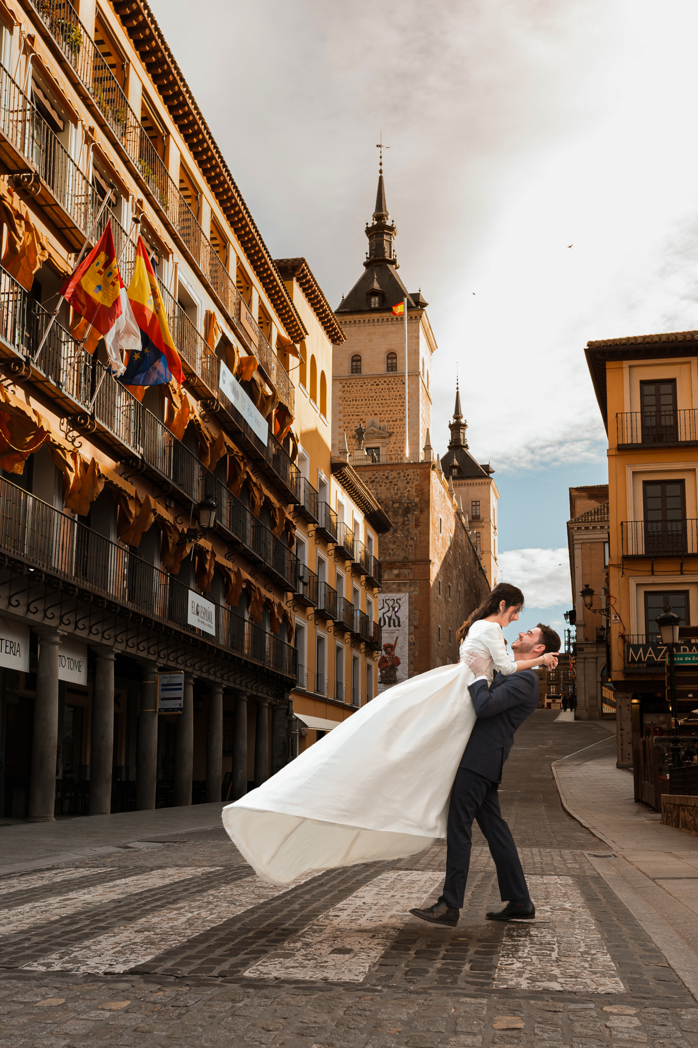 Toledo fue escenario y testigo. Sus piedras, su luz, las curvas de sus calles y ese aire de película. Y en medio de todo, ellos haciendo lo que siempre hicieron desde el principio: quedarse el uno al lado del otro, reírse juntos y elegir lo esencial.