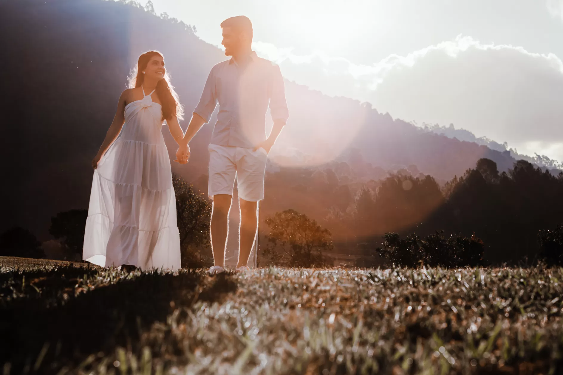 Um ensaio para respirar junto. Pés na grama, vento no rosto e aquele silêncio bom de quem se entende no olhar. A direção foi leve para que os gestos surgissem de verdade.