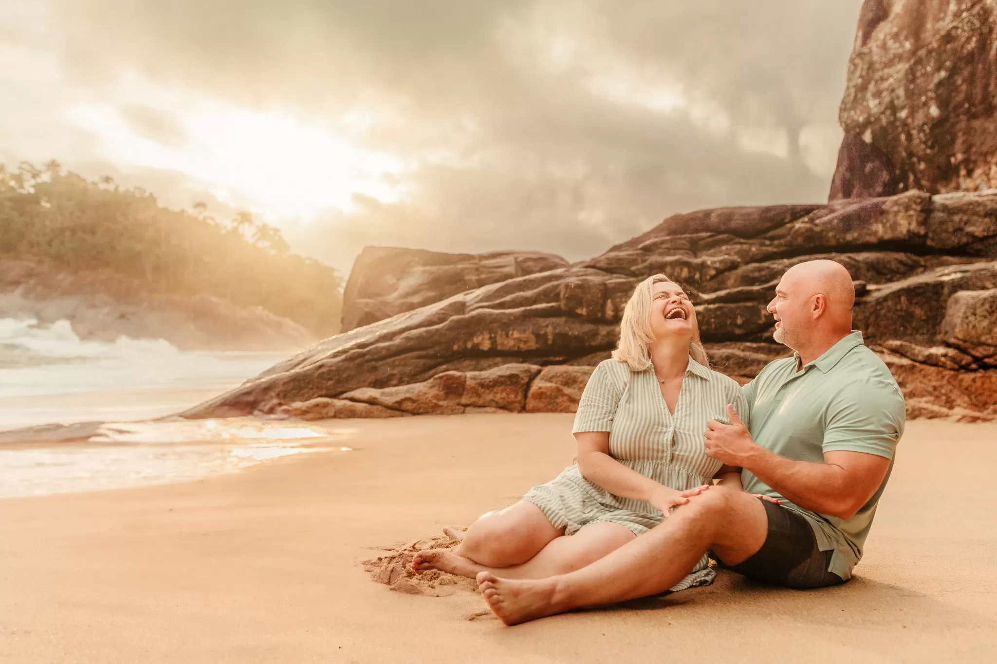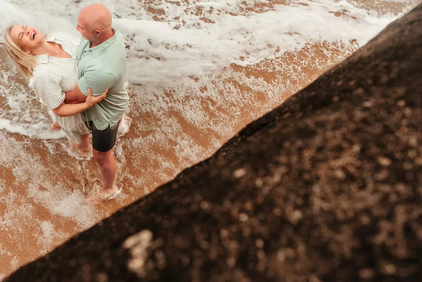O dia correu leve e divertido. Teve correria na areia, riso fácil, chuva de respingos e direção pontual para valorizar textura, horizonte e a imensidão que eles escolheram para esse momento. Eles amam fotos criativas que mostram o lugar e contam a energia de quem está ali. Em vários momentos os dois esqueciam a câmera e só viviam, e foi aí que surgiram muitas das imagens favoritas.